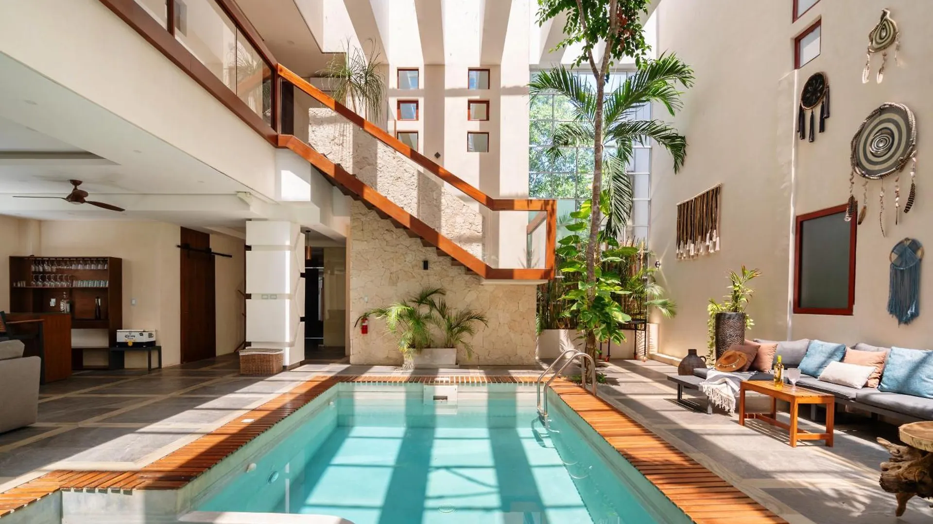 De villa bevindt zich binnen 65 km van de luchthaven Playa del Carmen en binnen 4 km afstand van culturele bezienswaardigheden zoals de Cenote Cristal. De gesitueerde in Tulum Pueblo 9Br Luxury Villas Aldea Zama, Private Pools & Gym! vindt u op 25 minuten lopen van het Las Palmas Strand. Voor sportliefhebbers is de woning een ideaal startpunt om de sportscene van Tulum Pueblo te ontdekken, met de ProKiteTulum Kiteboarding 4,1 km verder.